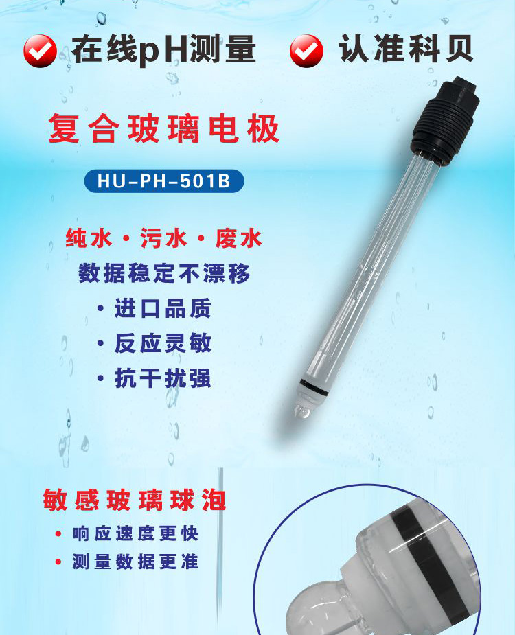 501B玻璃PH电极采用低阻抗敏感膜制造,响应快,热稳定性好,0-14PH范围内呈线性电位值,固态电解质填充,使用方便,与其他同类产品相比寿命增加20%。可与国内外各种PH仪表直接配套使用。主要用于各种水处理及其他类似工艺过程。