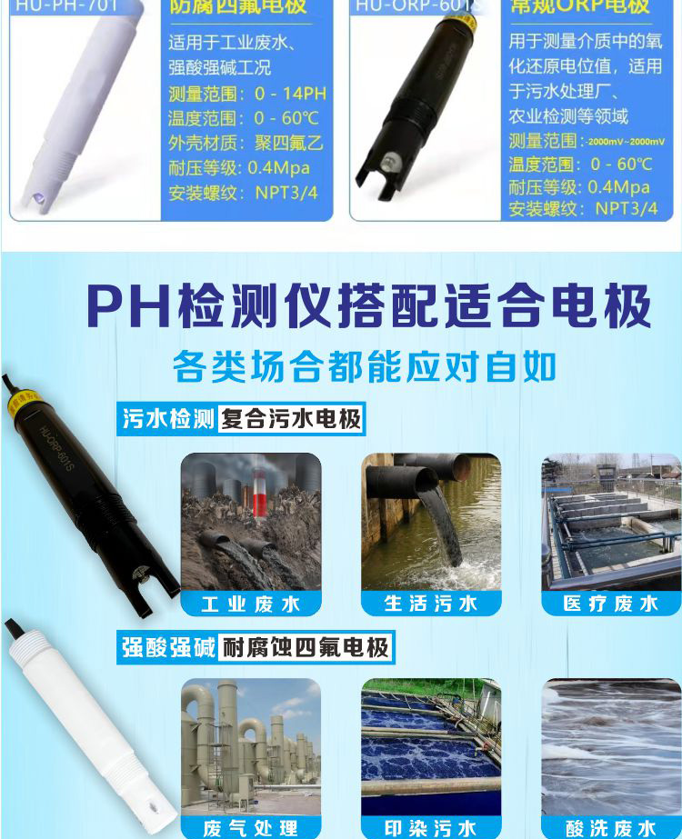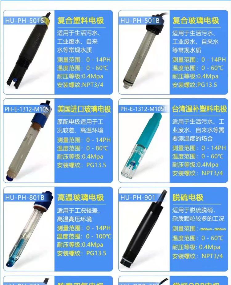 HU系列PH/ORP电极采用低阻抗敏感膜制造,响应快,热稳定性好,0-14PH范围内呈线性电位值,固态电解质填充,使用方便,主要用于各种水处理及其他类似工艺过程。